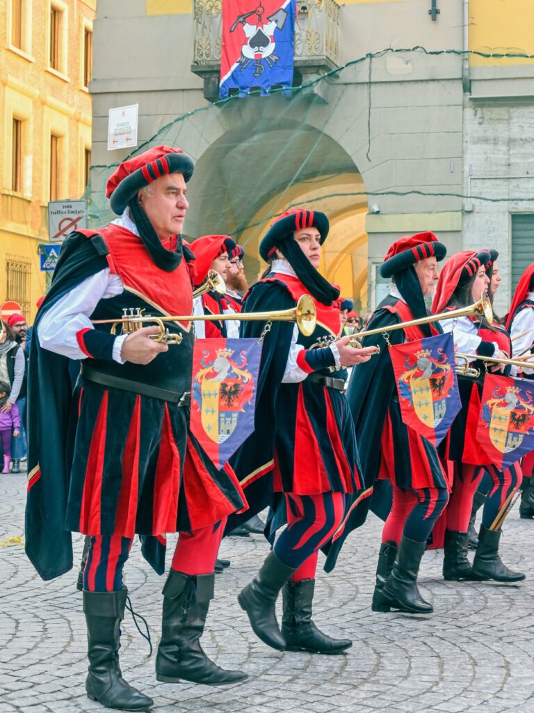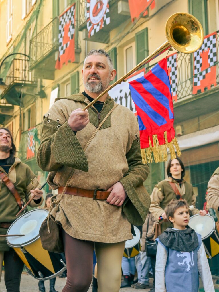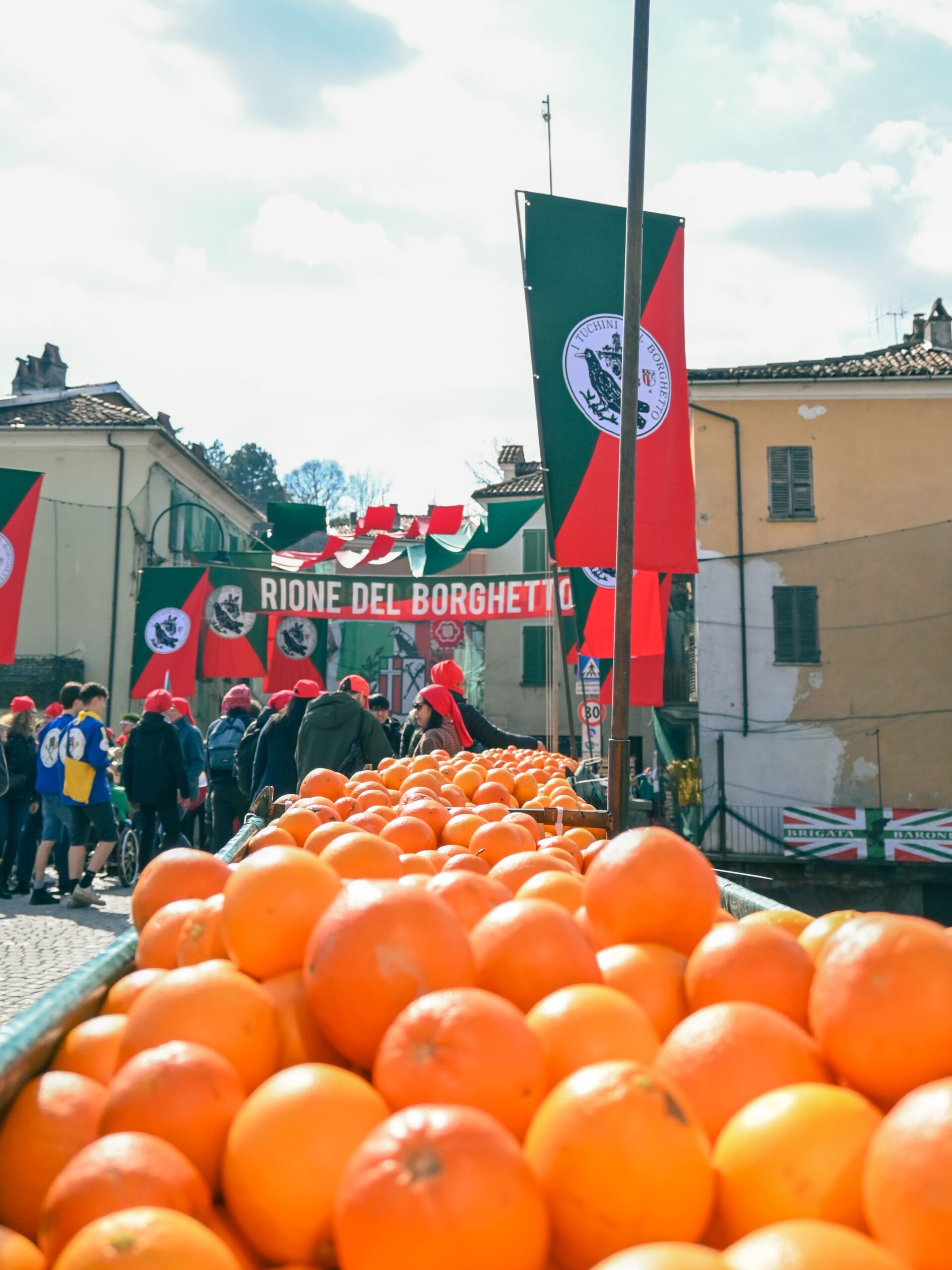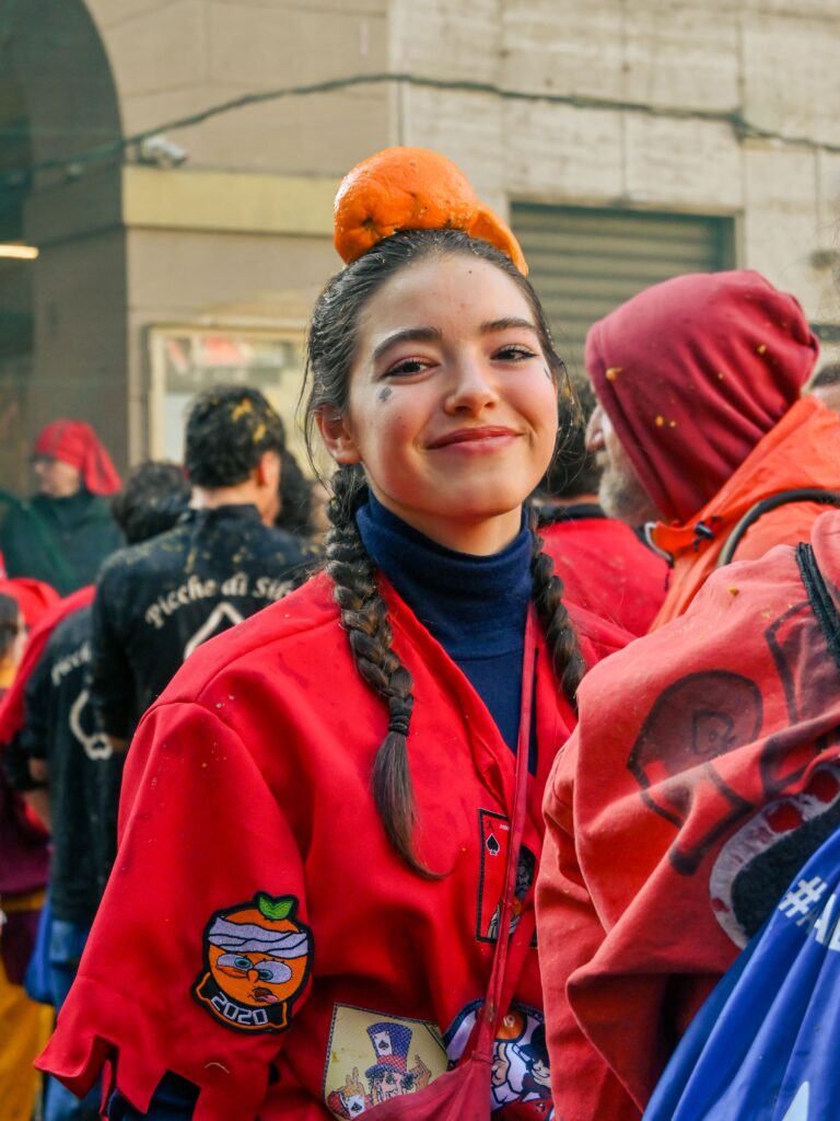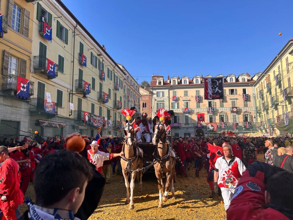 Si tratta è un evento di tradizione centenaria, che si svolge nel ponte di Carnevale da domenica fino al martedì “grasso”. Risale al XVI secolo ed era inizialmente organizzato e gestito dai rioni della città, in rivalità e in lotta tra loro durante i tre giorni di festa. Il Carnevale a cui si assiste oggi è il risultato di un complesso di cerimonie, che si sono unite e modificate nel corso di generazioni. La “Vezzosa Mugnaia” rimane tutt’oggi l’immagine principale dell’evento, simbolo di libertà ed eroina della festa sin dal 1858: nella leggenda fu il gesto eroico di Violetta, la figlia di un mugnaio, a liberare il popolo eporediese dalla tirannia, ribellandosi allo ius primae noctis imposto dal barone. La cittadinanza, insieme ai visitatori e alle visitatrici scendono in strada indossando il tradizionale “berretto frigio”, un cappello rosso a forma di calza, che rappresenta l’adesione ideale alla rivolta e quindi l’aspirazione alla libertà.