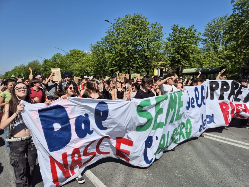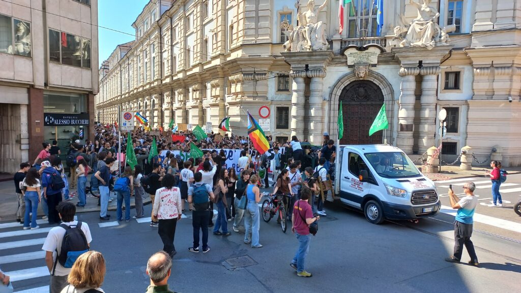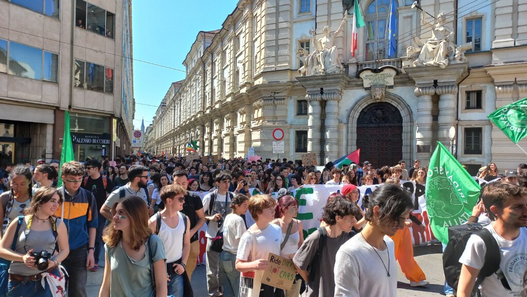 E’ sceso di nuovo in piazza Fridays for Future in sciopero in tutto il mondo per protestare contro il cambiamento climatico e l’inazione dei governi. A Torino in piazza Statuto si raduna un migliaio di manifestanti: meno degli anni precedenti, diminuiti in particolare dopo la pandemia di Covid-19, ma ugualmente entusiasti. Si grida contro il riarmo, contro le guerre e tutte quelle questioni, che distolgono lo sguardo dei governi dall’urgenza di occuparsi della crisi climatica, passata da alcuni anni in secondo piano nelle agende politiche.