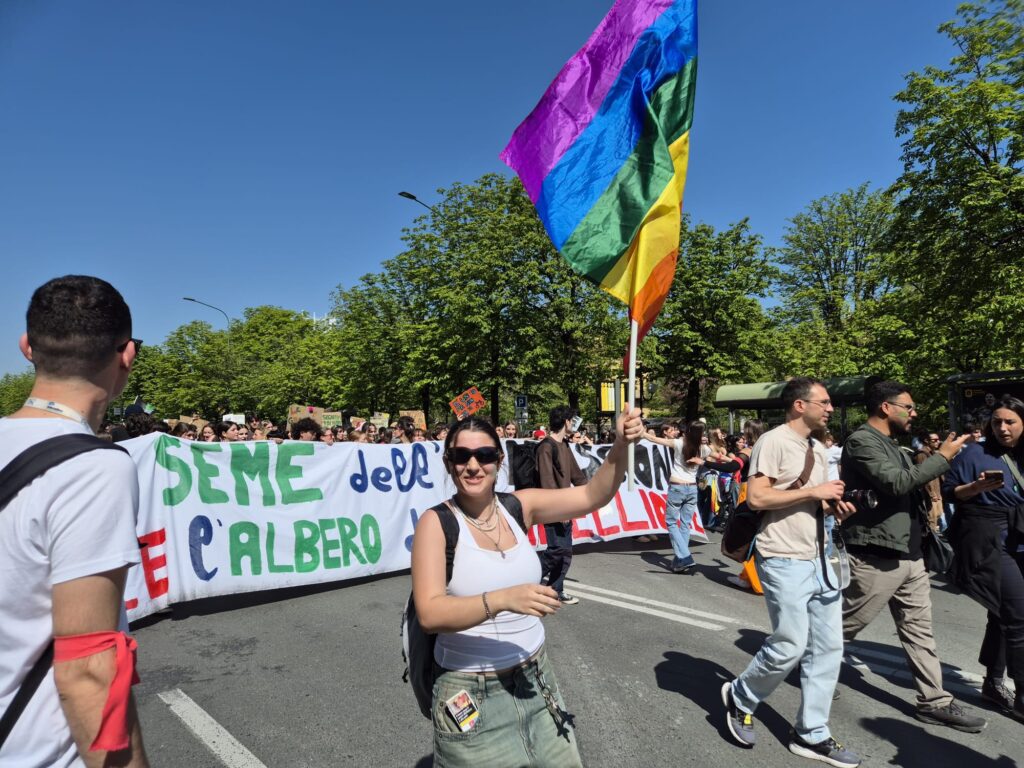 “Tutti i momenti dedicati ai gruppi presenti alla manifestazione servono a mettere assieme persone diverse, che soffrono per questioni diverse, ma tutte riconducibili allo stesso sistema di sfruttamento, causa stessa della crisi climatica – spiega Sara Diena, consigliera comunale di Torino con Sinistra ecologista, presente alla manifestazione -. Il riarmo in Europa, l’elezione di Trump, il genocidio in Palestina sono tutti temi che riempiono le pagine dei giornali, quindi è importante che anche i movimenti per il clima si facciano portavoce di queste questioni. Per la piega che sta prendendo il pianeta, non si può più parlare solo di crisi climatica, ma bisogna parlare di diritti delle persone: intervenire sulle tante preoccupazioni che affliggono le persone può essere una strategia per attrarne tante a manifestare”.