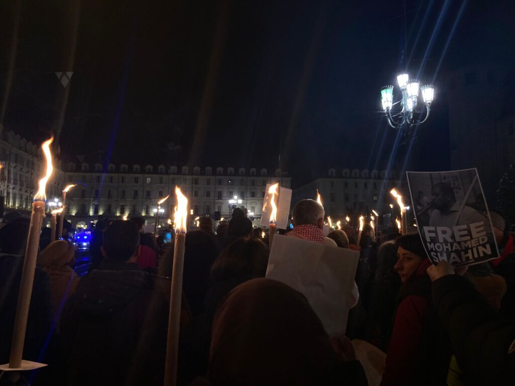 “Se Mohamed Shahin è in attesa di deportazione per quello che ha detto in piazza allora deportateci tutti”. È il grido che si alza dal presidio convocato per la liberazione dell’imam di San Salvario, da martedì rinchiuso nel Cpr di Caltanissetta in seguito a un provvedimento di espulsione. Il mese scorso, durante una manifestazione, aveva descritto il 7 ottobre 2023 come un atto di reazione, dicendosi d’accordo con quanto avvenuto. Aveva poi precisato di essere contrario a violenza e terrorismo, ma non è bastato.