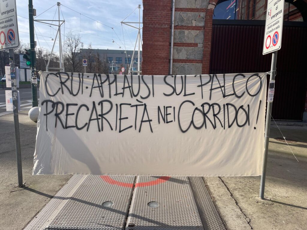 Nel giorno dell’inaugurazione dell’anno accademico del Politecnico di Torino davanti alle Ogr gli studenti protestano. Al centro delle contestazioni ci sono i tagli alle università e il precariato nel mondo della ricerca. La situazione resta tranquilla con circa una trentina di giovani legati a Assemblea precaria universitaria con striscioni e cartelli.
