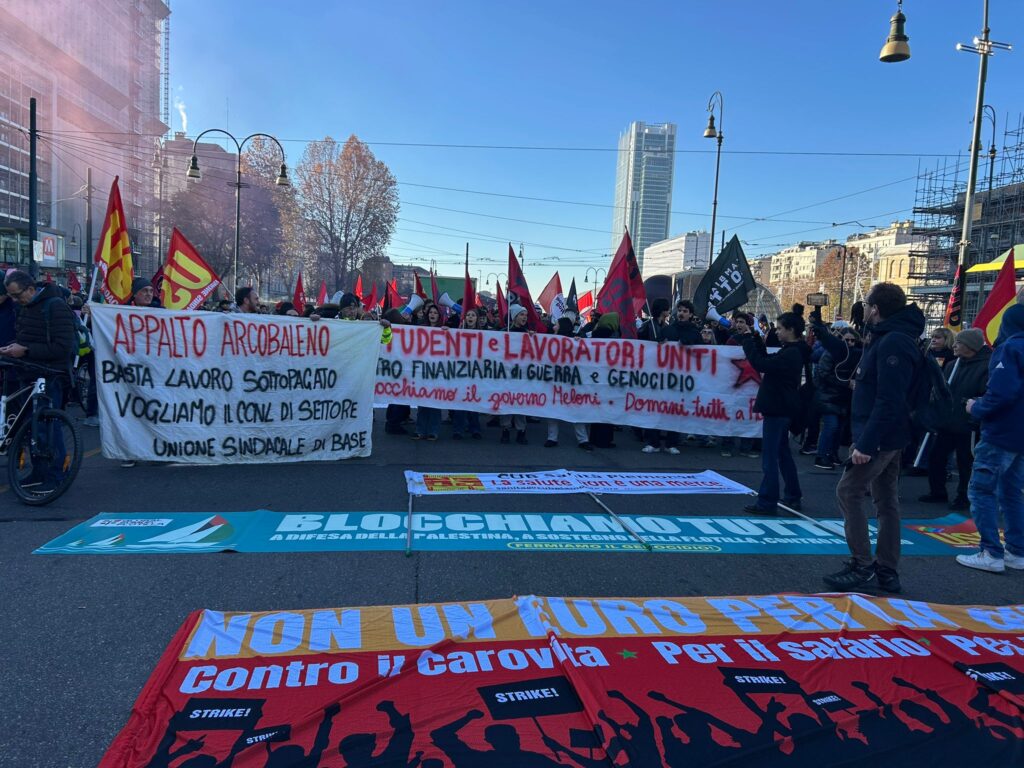 “Giù le armi, su i salari. Contro la finanziaria di guerra e il governo Meloni. Con la Palestina libera, rompere con Israele”, è questo lo slogan che racchiude il senso della manifestazione. Tra le altre cose si chiedono maggiori investimenti in sanità, scuola, università, trasporti, la riduzione dei programmi di aumento della spesa militare e il rinnovo dei contratti collettivi scaduti con aumenti di stipendio che recuperino almeno l’aumento del costo della vita degli ultimi anni.
