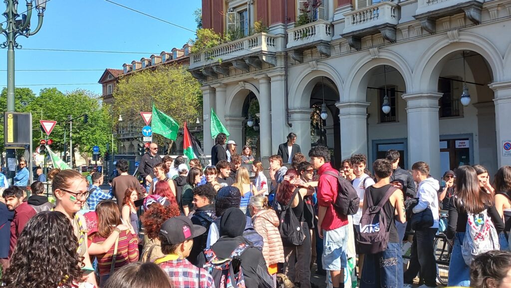 È partita a Torino alle 10:20 la manifestazione di Fridays for Future da piazza Statuto: destinazione il cuore della città, piazza Castello. Migliaia di manifestanti animano il corteo, percorrendo con cori e striscioni corso Inghilterra, corso Castelfidardo, virando su corso Stati Uniti, poi su corso Re Umberto e corso Matteotti, arrivando infine in via Pietro Micca e piazza Castello. Lo sciopero è stato organizzato a livello globale per protestare contro le guerre e la corsa agli armamenti, tendenze che, secondo gli attivisti e le attiviste, distolgono l’attenzione dei governi dell’urgenza di occuparsi della crisi climatica.