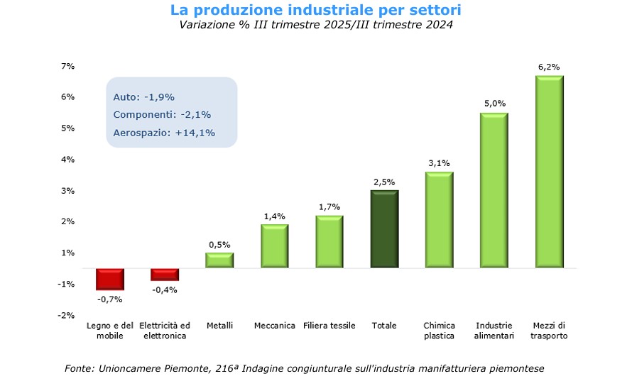 Cresce la produzione manifatturiera in Piemonte nel terzo trimestre di quest’anno. Tra luglio e settembre 2025, infatti, la produzione industriale regionale è aumentata del 2,5% rispetto allo stesso periodo dell’anno precedente. I dati sono stati rilevati e presentati dalla 216a “Indagine congiunturale sull’industria manifatturiera” realizzata da Unioncamere Piemonte, Intesa Sanpaolo e Unicredit.